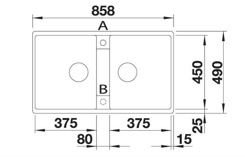 כיור כפול, שתי קערות שוות במידתן, בעיצוב מודרני.