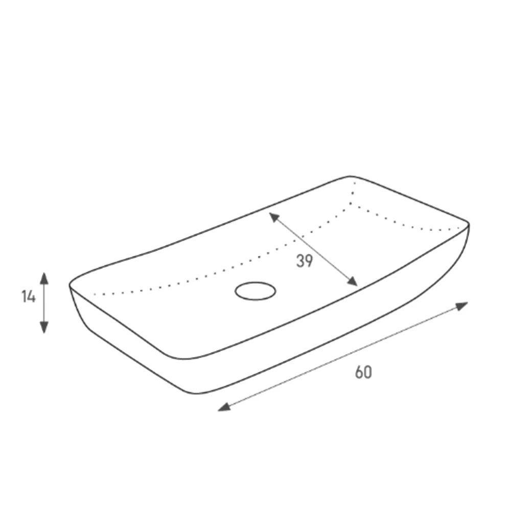 מידות: רוחב 60 ס”מ, עומק 39 ס”מ, גובה 14 ס”מ