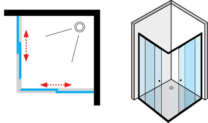 מקלחון הזזה פינתי 411 מידה 87-90 זכוכית שקופה