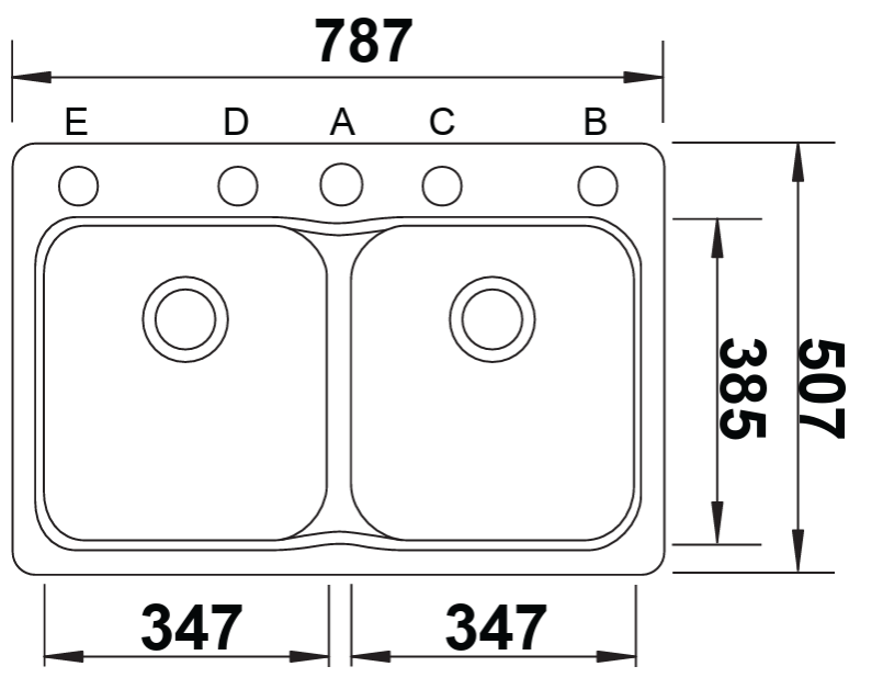 כיור כפול. 2 קעריות שוות.